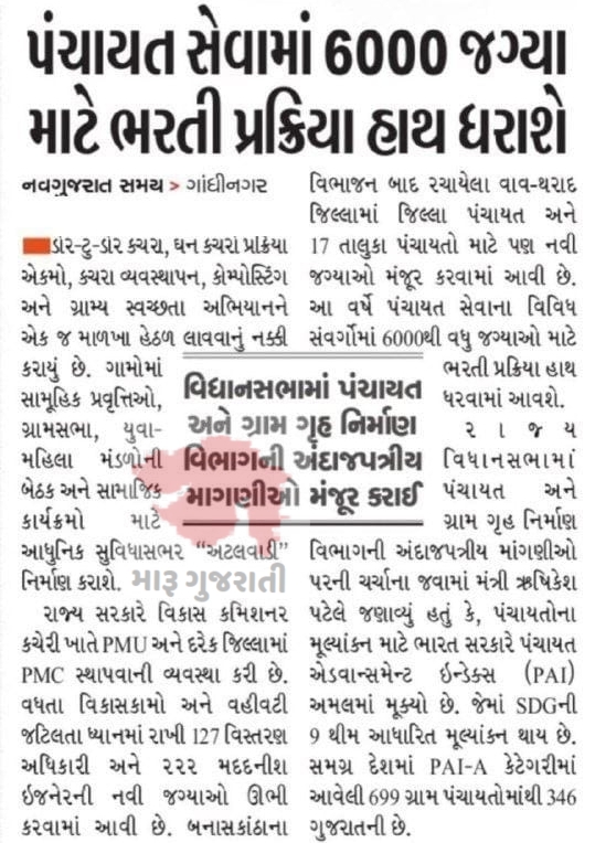પંચાયત સેવામાં 6000 જગ્યા માટે ભરતી પ્રક્રિયા હાથ ધરાશે