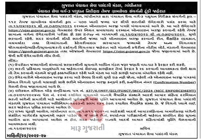 ગ્રામ સેવક ૫૦૦ જગ્યા માટે ભરતી – ગુજરાત પંચાયત સેવા પસંદગી મંડળ April 17, 2026April 17, 2026 આ પણ વાંચો GCAS Portal